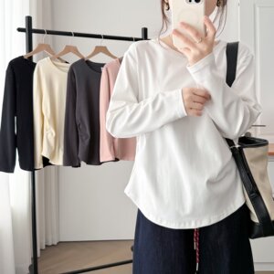 秋季新款200斤胖妹妹简约收腰圆领长袖打底衫大码百搭T恤内搭8344