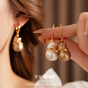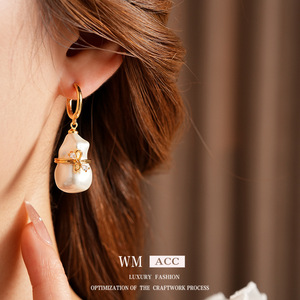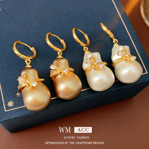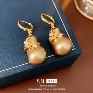 葫芦蝴蝶结镶钻珍珠耳扣小众高级感精致耳环法式复古轻奢耳饰百搭