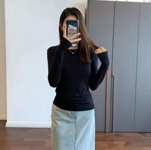 羊绒蛋白纤维打底衫莫尔代软糯亲肤内搭长袖百搭简约修身显瘦上衣