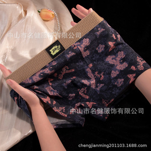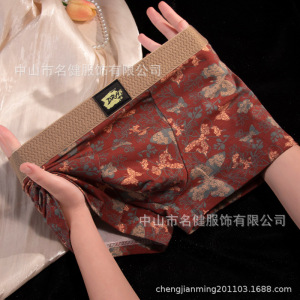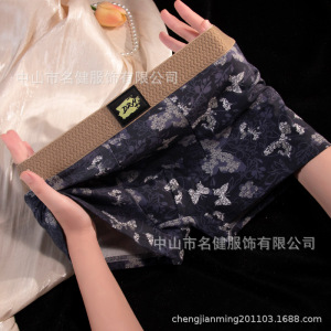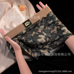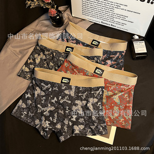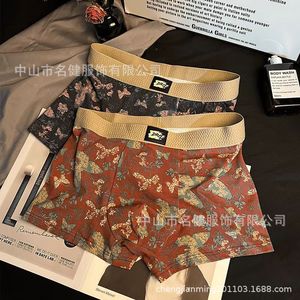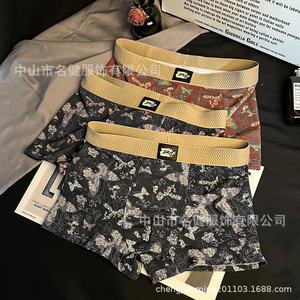 新款男士内裤纯棉时尚潮流蝴蝶印花内裤男款舒适透气新复古平角裤