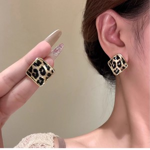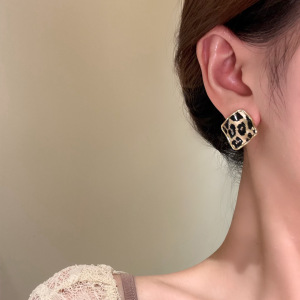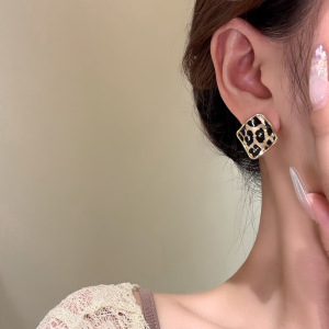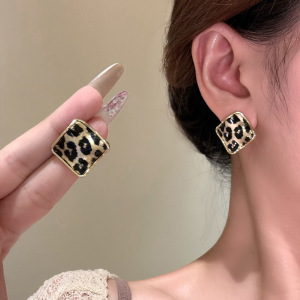 真金电镀银针豹纹菱形耳钉简约时尚气质百搭耳环轻奢高级感耳饰女