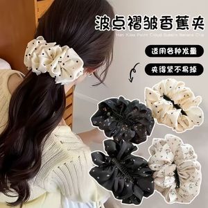 巨显发量韩系新款褶皱蓬蓬云朵泡泡波点碎花甜妹氛围香蕉蓬松夹