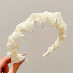 网纱褶皱蕾丝发箍女2025新款压发发卡高颅顶防滑带齿头箍洗脸头饰