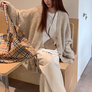 中长款慵懒风针织开衫女2025秋冬新款韩系穿搭外搭宽松毛衣外套潮