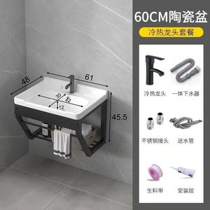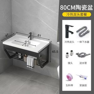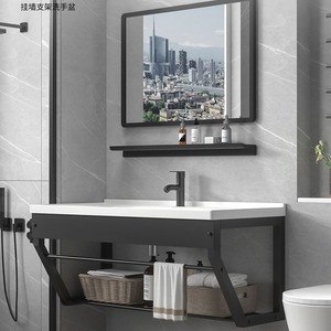 小户型挂墙式不锈钢支架台面陶瓷洗漱水池悬挂壁式家用简约洗手盆