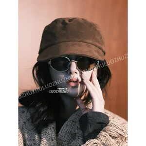 棕色帽子美拉德美拉德翻皮复古马术帽显白中古绒翻毛皮马术英伦风