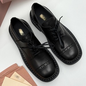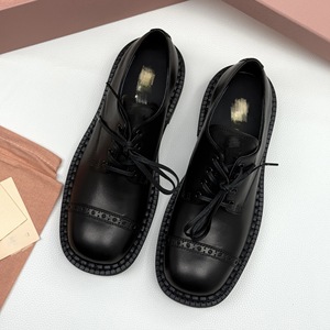 莞产高品!2025秋冬新款系带女鞋英伦真皮平底粗跟百搭德比皮鞋