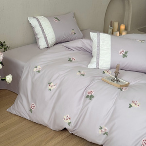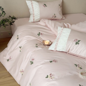 法式秋冬款100S全棉保暖磨毛毛巾绣四件套少女心床上用品被套床单