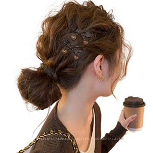蝴蝶结发夹女咖色爱心边夹侧边前额发卡2025新款刘海夹子头饰碎发