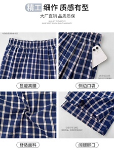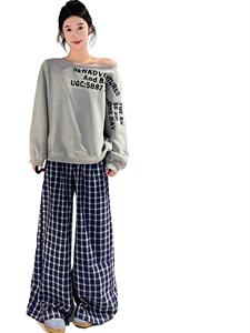 蓝色格子裤子女秋季2025新款高腰小个子慵懒风露思同款直筒阔腿裤