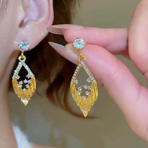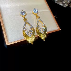 s925镶钻镂空树叶吊坠耳环时尚轻奢高级感耳钉小众气质百搭饰品女