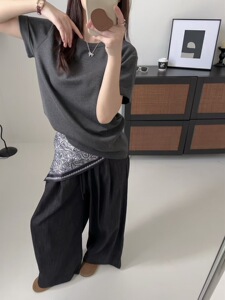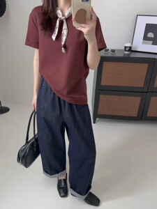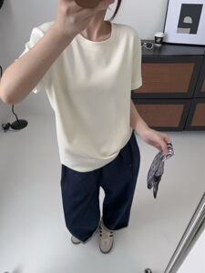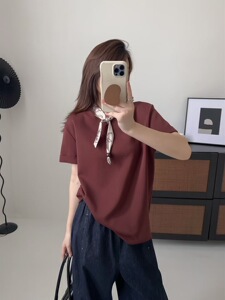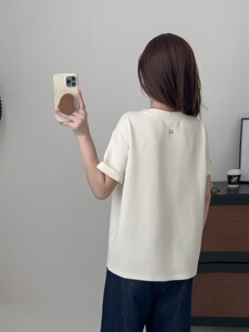 2025早秋宽松纯色打底短袖T恤女设计后背刺绣百搭通勤上衣ZWT