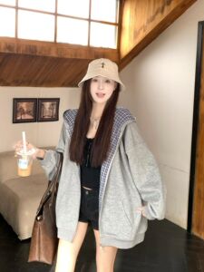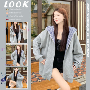 美式慵懒风卫衣纯色气质减龄连帽长袖外套女秋季宽松百搭休闲上衣