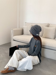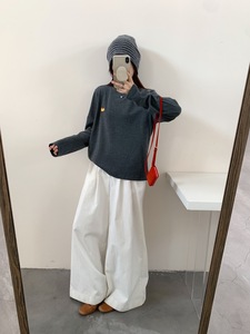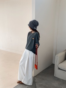 韩版高级感圆领刺绣T恤灰色南瓜长袖百搭薄款舒适内搭上衣女ZIE