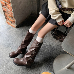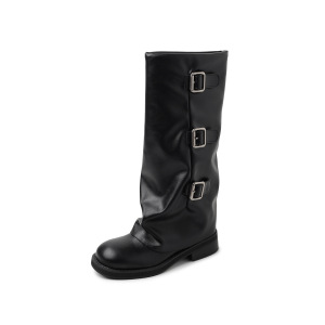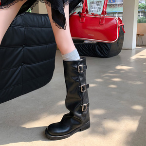 zijin家~博主穿搭时髦皮带扣圆头堆堆靴西部靴秋冬新款圆头裤腿靴