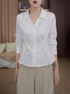 高级感白色雪纺衬衫女早秋2025新款大码胖MM显瘦收腰气质女士衬衣
