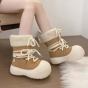 白色雪地靴女款冬季丑萌短筒棉靴增高厚底毛毛靴加绒加厚保暖棉鞋