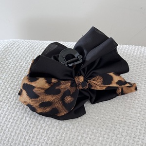 复古辣妹双层豹纹蝴蝶结抓夹女高级感2025新款质感鲨鱼夹发卡头饰