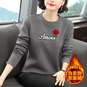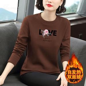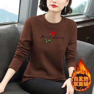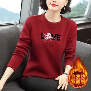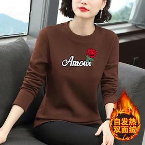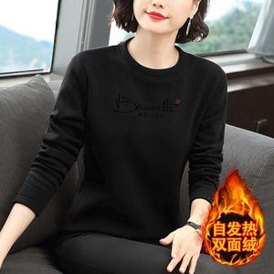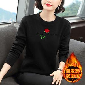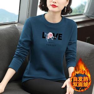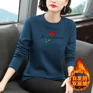 德绒加厚半高领长袖t恤女冬季中年妈妈装保暖宽松大码女装打底衫