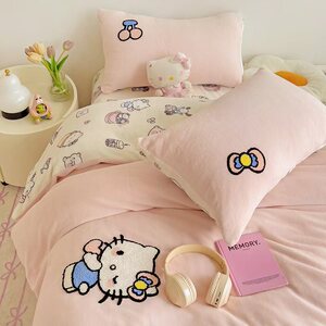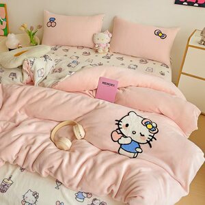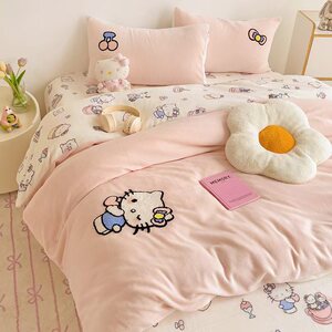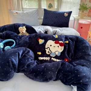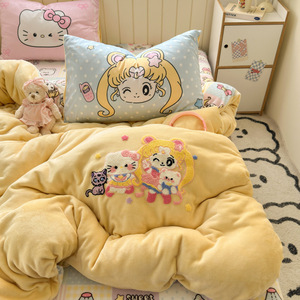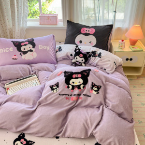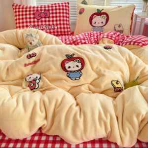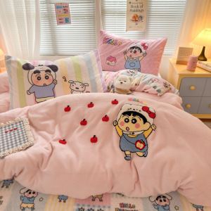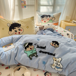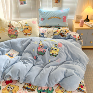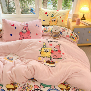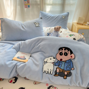 A类加厚牛奶绒四件套卡通高克重防静电加绒被套轻奢风秋冬保暖