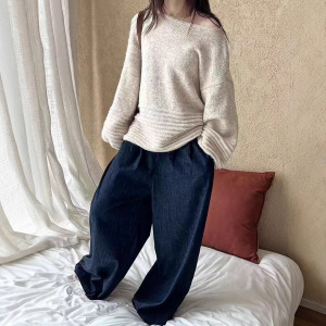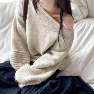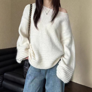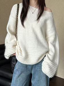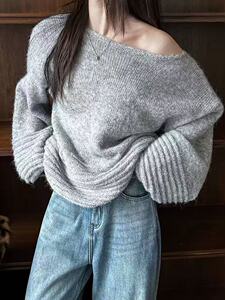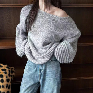 外贸慵懒风气质针织毛衣女秋冬2025新款宽松灯笼袖上衣针织衫