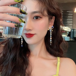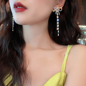 S925银针时尚蝴蝶结流苏耳环韩系高级感耳钉气质锆石轻奢小众耳饰