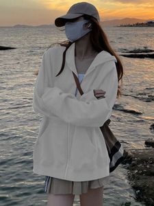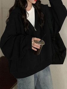 连帽卫衣女秋oversize薄款拉链外套ins潮牌宽松慵懒风开衫上衣