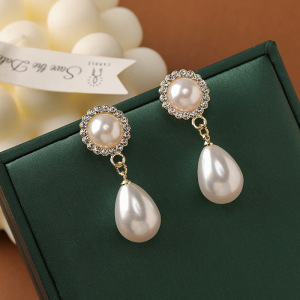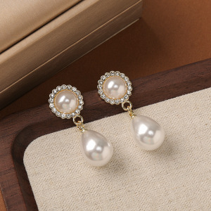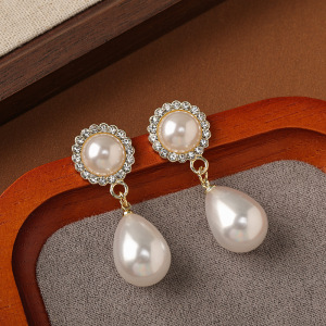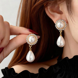港风复古轻奢镶钻珍珠耳环巴洛克宫廷风新娘婚纱耳饰旗耳坠袍配饰