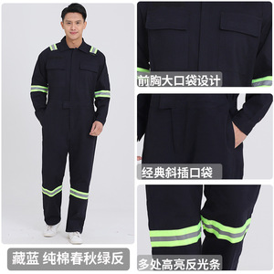 跨境连体工作服男反光全棉煤矿井下船厂船员工装外贸劳保服连体服