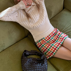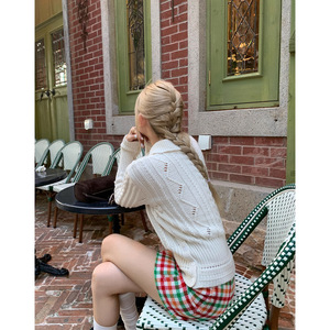 慵懒风云母莫桑 麻花纹翻领毛衣女2025秋季新款修身短款针织上衣