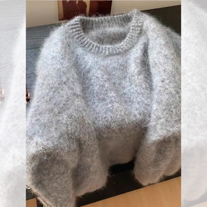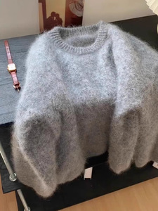 灰色水貂绒圆领超仙毛衣女秋冬加厚温柔软糯针织衫慵懒风欧货上衣