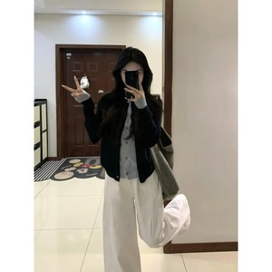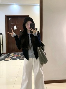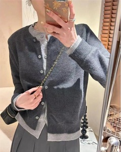 老钱风假两件撞色针织开衫外套女春秋季时尚单排纽扣长袖上衣毛衣