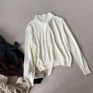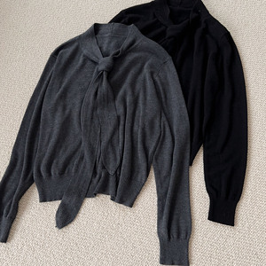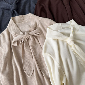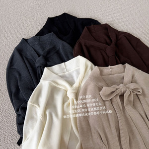 英伦温柔风飘带针织衫女秋冬设计感气质六羊毛长袖上衣亲肤内搭衫