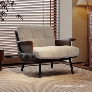 设计师轻奢洽谈扶手椅意式极简民宿中古侘寂风休闲单人沙发椅