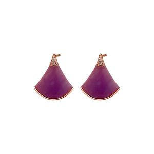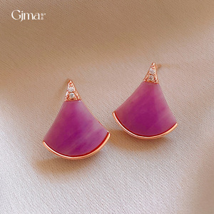 14k真金电镀银针紫色扇形树脂锆石耳钉轻奢高级感耳环时尚耳饰女