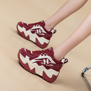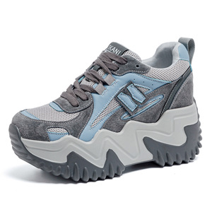 2025秋季新款8cm内增高休闲老爹鞋厚底细带小白鞋拼色运动女鞋ins