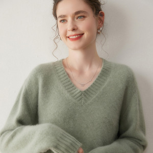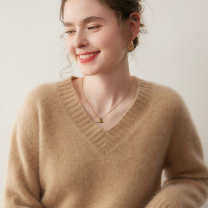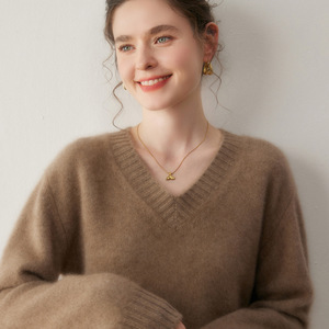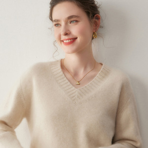 秋冬新款山羊绒女针织打底衫V领宽松显瘦保暖长袖毛衣内搭时尚