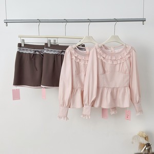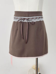 实拍YETINGXI日系甜美天丝长袖衬衣蝴蝶结绑带+收腰撞色半裙套装