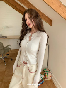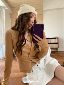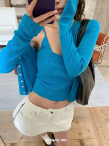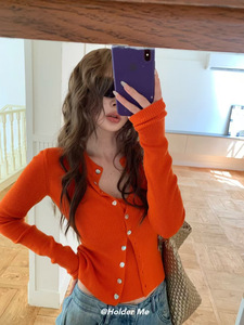 HOLDER ME正版 显白橙色针织吊带开衫两件套秋季修身短款外套上衣