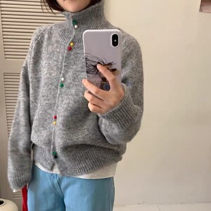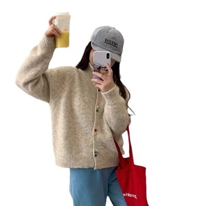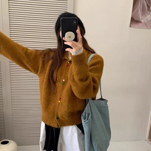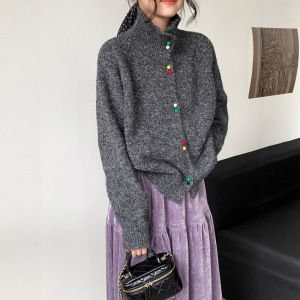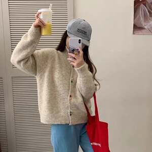 法式温柔风彩扣毛衣开衫女秋冬新款洋气宽松休闲甜美软糯针织上衣