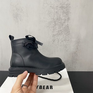 丝带蝴蝶结甜美蕾丝花边款儿童英伦风时装靴2025年秋冬款女童皮靴