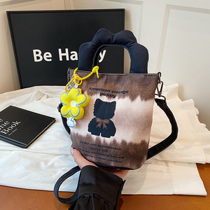 小众设计插画包包女2025新款百搭休闲小手提托特包可爱斜挎单肩包