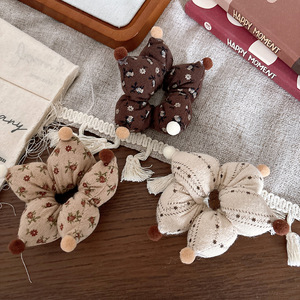韩版甜美可爱碎花五星儿童肠圈女童百搭布艺丸子头发圈咖色系发饰
