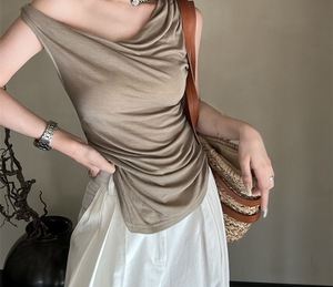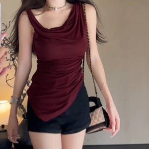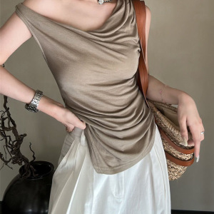 秋季新款温柔多种穿法荡领收腰显瘦设计感百搭气质无袖上衣背心女