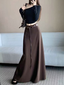 2025秋季半身裙女设计感高腰a字裙显瘦百搭气质垂感大摆长裙