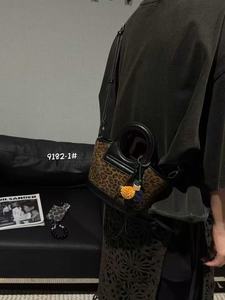 复古磨砂手提菜篮子豹纹手提包2025新款时尚韩版拼接单肩斜挎包
