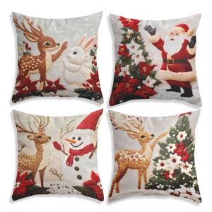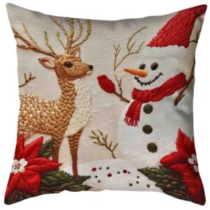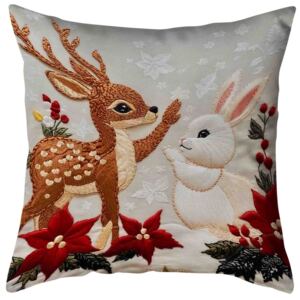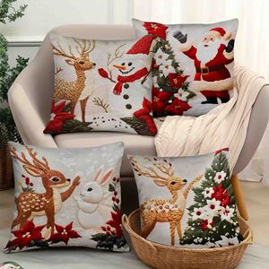 跨境temu爆款雪人圣诞节抱枕套仿刺绣驯鹿兔子家居沙发装饰靠垫套