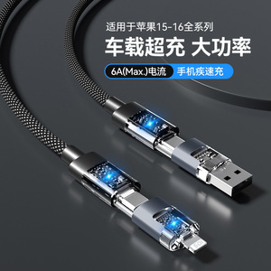 透明编织数据线四合一100W适用苹果15华为超级快充pd多功能充电线