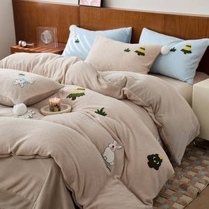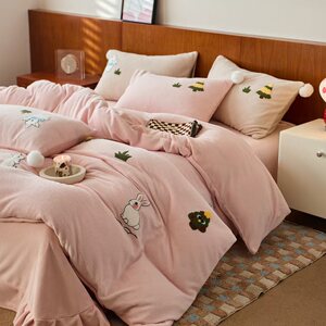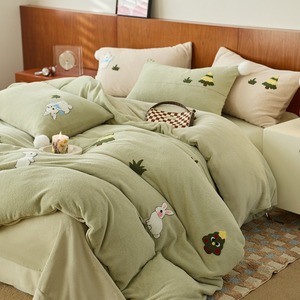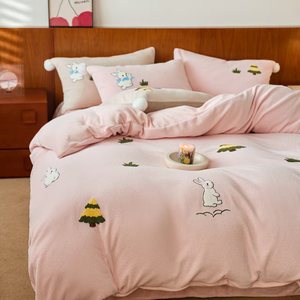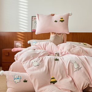 A类少女心保暖牛奶绒四件套毛巾绣加绒保暖双面可用防静电床套件