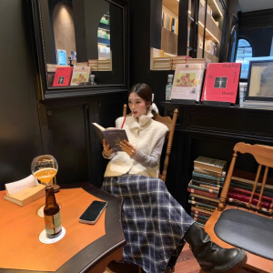 实拍 韩国chic宽松休闲高领毛衣马甲不规则半身裙送腰带套装89324